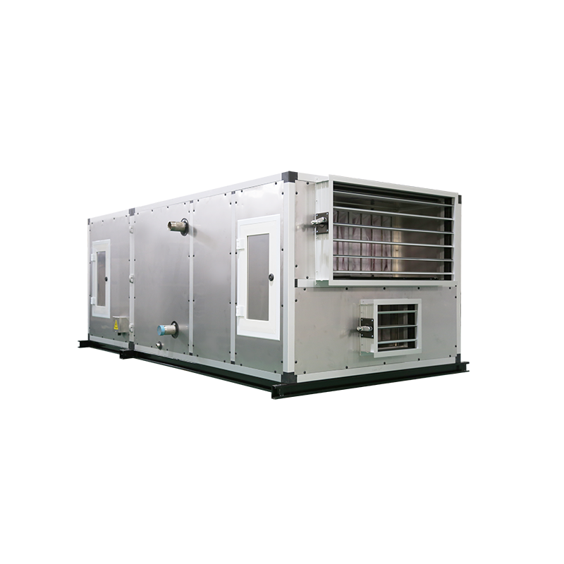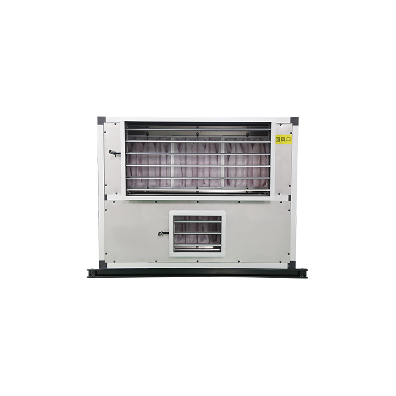 本产品适用于净化面积较大,净化级别要求相对较高的场所,此设计把二次回风技术应用到空调设备中,对热湿处理和净化增压独立处理,直接在设备中增加二次回风环节,既简化通风系统,也减少了施工难度,节约能耗的同时,也降低了初投资成本。釆用二次回风处理技术,充分实现冷却、加热、加湿、净化、消声、除臭、除菌和通风换气等处理过程。在对空气进行温、湿度调节的基础上,增加了对空气进行过滤净化处理,以提高使用环境的洁净度,不但能满足温湿度及洁净度要求,而且节省了能源的消耗。